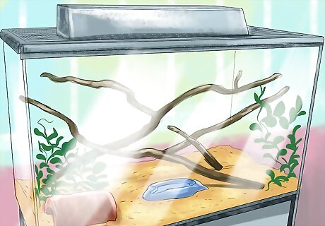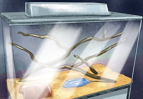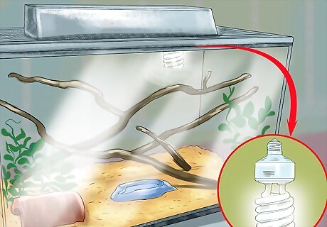 Add a viewing light. If you want to be able to see your snake better, you can add a standard florescent bulb to the habitat, or just put a light nearby. You don’t need any kind of special lighting in the tank.