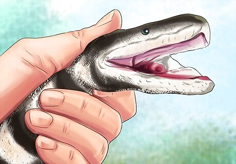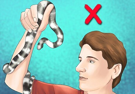 Handle your snake gently. Remember that this is a wild animal, so it may be afraid of you for quite some time. Hold your snake gently, and stay away from its face, especially at first. Start with just a few minutes of handling once a week and work your way up. It’s not unusual for king snakes to defecate or urinate on you when you handle them, especially at first. If you notice that your snake’s behavior or appetite changes suddenly, it could be because it’s stressed from too much handling.