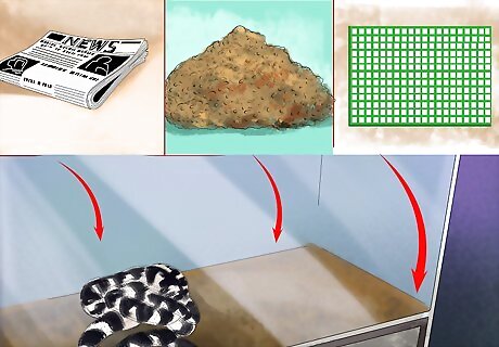 Cover the floor of the habitat. You can purchase commercial substrates or use newspaper, paper towels, or indoor carpet. Don’t use cat litter or anything chemically treated or oily. Avoid anything that has an odor. If your snake can’t burrow into the floor covering of your choice, provide a few places for it to hide inside the tank so that it feels secure. You can use half-logs, cork, or pieces of grapewood.