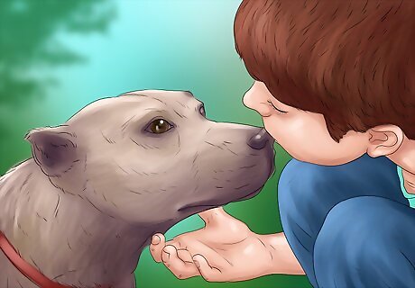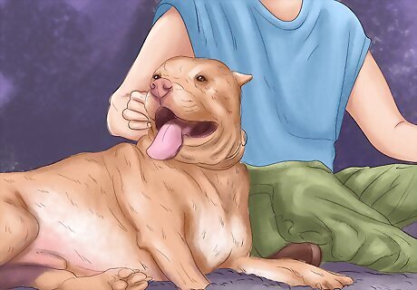 Spend quality time together. Although it is important to establish routines and good behaviors, it is equally important to enjoy your dog as well. Going for short outings or trips, buying a new toy, or giving your dog treats are all great ways to spend time and show appreciation. Instead of your daily exercise routine, take your Pitbull on a hike. Show affection for your dog by petting, rubbing, and stroking them.