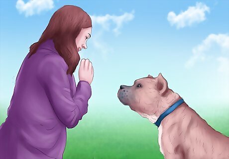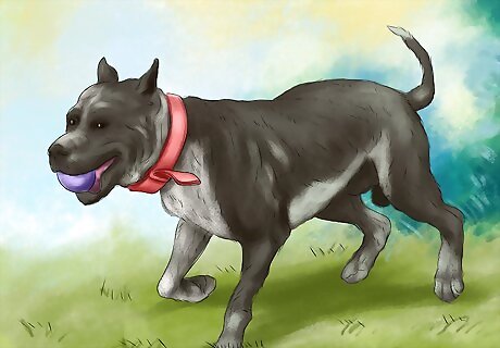 Play with your Pitbull. Playing with your dog will often involve activities like chasing or wrestling as they are built to withstand more physical activity than other dogs. Pay attention to your dog’s body language and notice when they are no longer interested in playing or are getting frustrated. Spend fifteen minutes playing with your dog when you get home from work.