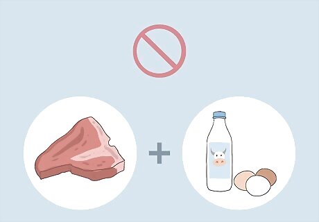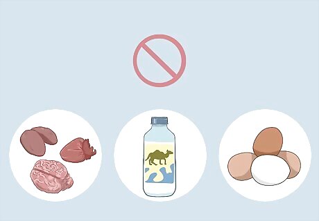 Do not eat any part of an un-kosher animal. Not only can you not consume the meat of an un-kosher animal under the laws of kashrut, you also cannot consume their milk, eggs, fat or organs. This may seem easy to avoid, but in some cases, it can be tricky. For example, many kinds of cheese are hardened with an enzyme called rennet, which is often obtained from non-kosher animals. It's important therefore to examine the ingredients in every product that you buy or only purchase items that have been marked with a kosher seal.