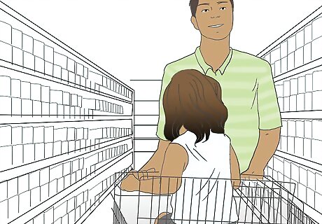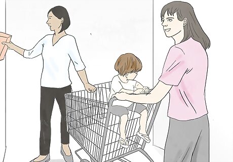 Shop with someone. If you cannot leave your child at home, consider shopping with another adult who can watch the child. They can stay with the shopping cart or push the child in a stroller while you control the cart.