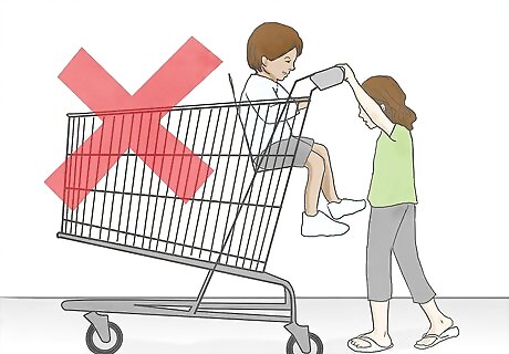 Keep your child seated at all times. Your child has a higher likelihood of remaining safe if they sit in the cart at all times. Many shopping cart accidents occur because a child stands up in the seat. When your child stands up, they can fall out of the cart or cause the cart to fall over. Standing changes the distribution of weight and may make the cart tip forward.