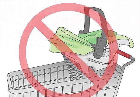 Do not place infant carriers on top of the cart. Infant carriers or car seats that are placed on top of the cart can make the cart unbalanced and tip to one side. Even if the carrier looks like it will fit or there are clips, you shouldn't do it. This places your child in a risky place because the carrier is not stable in the child seat of the cart. The carrier can easily fall out. If you need your infant carrier, place it in the large basket of the cart.