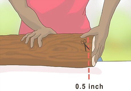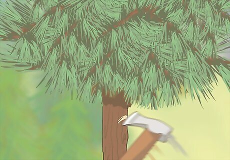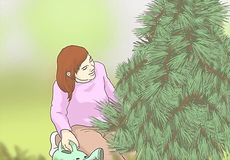 Trim the trunk. Cut another ½ inch to an inch off the bottom of your tree when you get it home. Once a tree is cut, sap will start to seal over the base and therefore hinder the tree’s ability to receive water. Once you make the cut, immediately place your tree in a bucket of water until you have the tree stand set up.