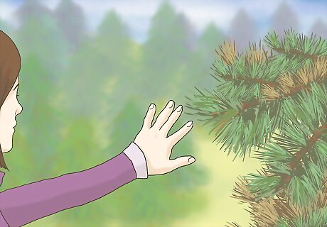 Remove any dead needles. Once you’ve eliminated the trees with any brown needles, run your hands through the branches of the freshest looking trees. The freshest trees will retain their needles even through the disruption. To shake out remaining dead needles, pick up your final selection and drop it on its trunk (obviously, you can only do this if you visit a precut farm). Very few, if any, green needles should drop to the ground.