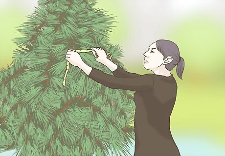 Measure the available space. Measure the space where your tree is going to be located to determine just how big of a tree you can actually get. Many families, when they get their tree home, find that the tree they picked is far too big for the location they had in mind for it. In order to accommodate their tree, they cut branches, bend branches, and trim the tops. But if not done properly, pruning and trimming can actually kill your tree. Take the tape measure and measure the height, width, and depth of the space. To determine the maximum height that will work for the space, remove one foot of height to allow for the tree topper, and another six inches to allow for the tree stand. Because Christmas trees tend to be symmetrical, use the smaller of the width and depth measurements to determine how round of a tree you can get.