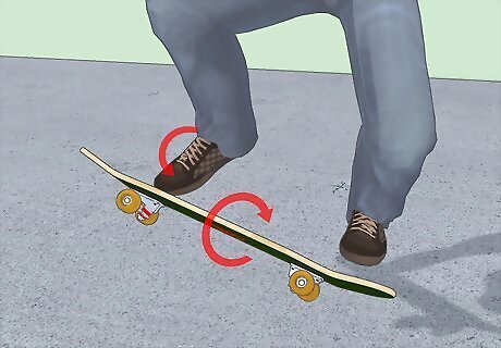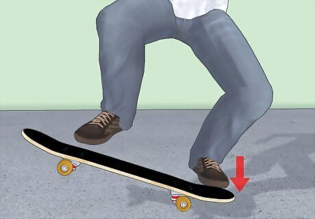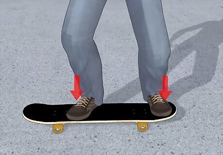 First, put your back foot on the tail like an ollie and put your front foot in the middle of the board like an ollie.