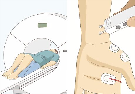 Undergo some imaging tests to confirm the diagnosis. Your doctor may not be able to make a diagnosis based on your symptoms and a physical exam alone. Some tests your doctor may order include: Magnetic Resonance Imaging (MRI): An MRI uses powerful magnets and radio waves to generate images of the inside of your body. Nerve Conduction Study. For this test, a series of electrodes will be placed on your skin to measure the how your nerves respond when a small electrical current passes through them. Electromyography (EMG): For this test, your doctor will need to insert a needle into the muscles where your symptoms are located to test their reaction and determine if there has been any nerve damage. X-ray: This primarily checks for bone spurs or thickening.
