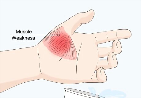 Muscle weakness: This is a common symptom of a pinched nerve in the area. Any sudden muscle weakness could be a sign that you have a pinched nerve, so don't ignore it if it doesn't go away. Pay attention to any changes in your strength to signal that you may have a pinched nerve. The pinched nerve will affect the muscles around it. For example, if you have a pinched nerve in your wrist, then your hands and fingers might weaken or your grip might be loose.