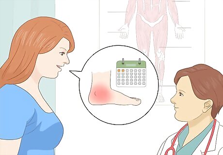 Let the doctor do a physical exam. Your doctor will examine your body for any signs of a problem. Be sure to point out the areas where you have been having symptoms and when they started. For example, if you have been having numbness and tingling in part of your leg, then specify the area of your leg where you have these symptoms. The doctor will take a look at the area and use your descriptions to determine if you have a pinched nerve. Also include relevant information like having a repetitive job or sitting for long periods. These risk factors make pinched nerves more likely. Over time, a pinched nerve may cause swelling, pressure, and scarring, so your doctor may be checking for this. Let your doctor know if you have noticed any of these symptoms.