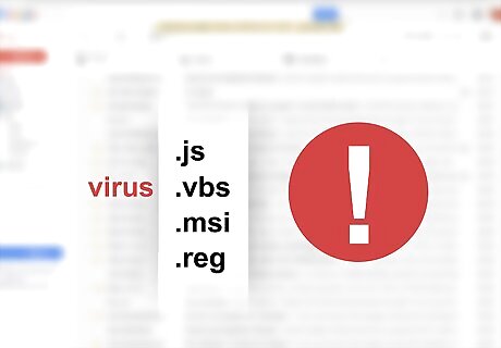 Be aware of dangerous email attachments. Anything can be attached to an email—including harmful downloads. Look for some common warning signs to help keep your computer protected. Watch for dangerous document extensions. Some common harmful extensions passed through email attachments are .js, .vbs, .msi, and .reg. Most email services block these files, but check before you download attachments. Pay close attention to office files. Office file extensions that end with m contain macros and these are potentially dangerous. Although some businesses use macro-enabled documents, be conscious of extensions such as: .docm, .xlsm, and .pptm, Know the common safe extensions. In general, it is ok to trust .pdf, .pptx, .docx, .xlsx, .jpg, and .png.