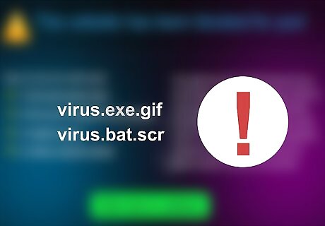 Download files safely from websites. Look over the site that you’re downloading from. If the site has been in existence and is backed by a valid organization, chances are it’s trustworthy. Files that carry viruses are dangerous. The main file types to avoid are files with extensions such as .exe, .scr, .bat, .com, or .pif. Hackers trick people easily with double extension files. For example, if a file ends in .exe.gif or .bat.scr, do not download it! These double extensions are often a virus or torrent.