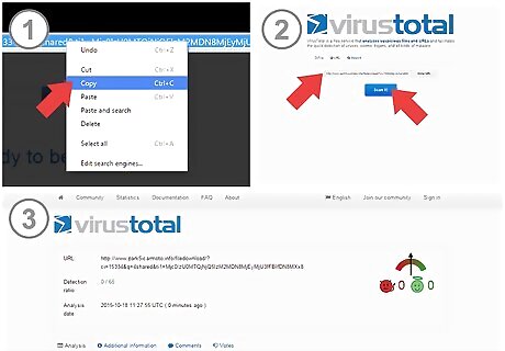 Submit your file to an online validation. Even if you trust the site, file, and digital signature, use an online service, like VirusTotal, to scan your file. Right click your file’s link, and select “Copy link address” Go to VirusTotal.com and select “Submit a URL” Paste the your link in the text field and click “Submit URL” Click “View downloaded file analysis” If nothing was detected, you can assume that the file is safe and fine to use. If something was malicious within the file, the site will warn you.