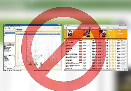 Use safe programs. Using the P2P software not only puts your computer at danger, but also puts you in line for potential fine and jail times. It is illegal to download without permission of the copyright holder. These programs allow you to legally download music: Ruckus iTunes eMusic Amazon Napster