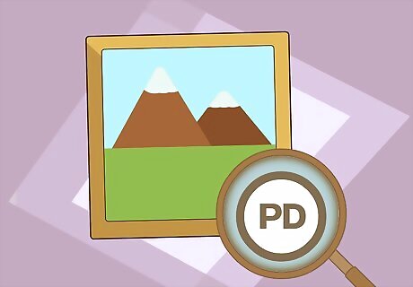 Search for public domain images. When an image is in the public domain, it is not protected by copyright law. Because no one owns the copyright, they can’t stop you from using the image on your website. There are many image depositories on the web that offer public domain images. However, keep the following in mind: An image might be “royalty free” but not in the public domain. Instead, the owner could put use restrictions, such as limitations on how often the image can be reproduced. Many depositories that host public domain images also host copyrighted images. You should be careful as you look through the images and not assume that all images in the depository are free to use. An image does not need a copyright notice attached to it to be under copyright protection. Ever since 1989, photographers do not have to put copyright images on their pictures in order to secure their copyright.