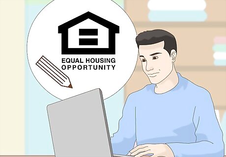Advertise your commitment to fair housing. Choose your words carefully. Avoid trying to describe your ideal tenant. This could be misconstrued as being discriminatory. For example, if your property is near a school, mention the proximity to the school. But don't say, “perfect for young families,” as this makes it look like you're excluding certain groups of people. Realtors are required to display the fair housing logo from the Office of Housing and Urban Development (HUD) when they advertise a property, so include it when you advertise your property to show your commitment to fair housing. You can download the logo by going to www.hud.gov, clicking on "Program Offices," "Fair Housing/Equal Opportunity," "Library," then "Equal Housing Opportunity Logo". You can be charged hefty fines if you're found guilty of violating the Fair Housing Act, but the rules differ on what's allowed when you're renting to a roommate or renting an entire home. For example, if you're renting to a roommate, it's acceptable to advertise for a particular gender; however, you can't do that if you're renting the entire home. You are allowed to limit who you'll rent to based on criteria such as income, credit history, rental history, employment, and the number of people who will be occupying the property. You must provide the criteria in advance, and, if someone is rejected, provide them with an adverse action letter explaining why. You can also suggest a way for them to gain approval, such as adding a cosigner or paying an extra deposit if they have bad credit.
