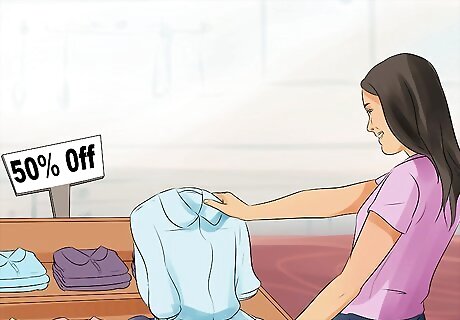 Shop for discounts. By seeking more affordable options, it is possible to save a significant amount each month. Seek out household items at your local thrift store or used clothes shops. Use your local library to take out books, movies, and magazines instead of spending money at a retail shop. When you have a limited budget, it may be hard to justify a spontaneous purchase and simple items like a new book or a new pair of shoes can seem like luxuries. Rather than depriving yourself of enjoyable items, look for the discounted or free alternative. Try to have fun with the hunt for discounts. Make it your mission to look for a used item in great condition at a garage sale or a thrift store, for half or one third of the price of a new item. Consider thrift locations like the Salvation Army or Value Village. As well, yard sales, or discount and outlet stores like TJ Maxx or Marshalls can offer attractive deals. Outlet stores like TJ Maxx or Marshalls offer brand name quality, except at up to 60% discounts since they receive inventory from overbuys at other locations. Additionally, watch for sales from other retailers as an opportunity to buy quality for less.