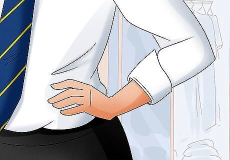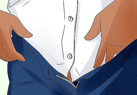 Wear your pants a little lower. Instead of wearing your pants higher up near your waist, let your belt out a little so you can wear your pants lower on your hip.