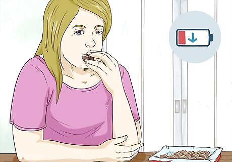 Identify if you’re actually hungry or eating to cope with stress. Any time you find yourself looking for something to eat, take a moment to check in with how you’re feeling. Consider when you ate last and if you feel hungry. If you ate within the last 3 hours and don’t feel hungry, identify what’s causing you to look for food. For example, are you bored, lonely, tired, sad, or anxious? If so, what’s causing you to feel this way? Tip: If you’re actually feeling hungry, don’t deprive yourself. It’s okay to eat. Just make sure to choose something healthy.
