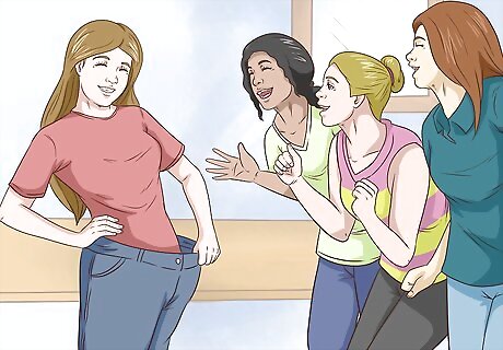 Find support from friends, family, or a weight loss group. Having social support can help to reduce stress levels and it may also make it easier for you to stick with your weight loss program. Tell your friends and family that you’re trying to lose weight caused by stress. Ask them for their support and encouragement as you work towards your goals. For example, you might ask a sibling or best friend to text you or call you once per week if they haven’t heard from you and ask for a progress report. Tip: You could also join a support group for people who are trying to lose weight. There are groups that meet in person or online. Try asking your doctor or a therapist if they know of any local support groups for weight loss.