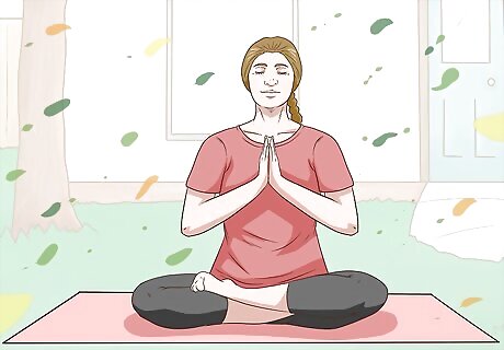 Use relaxation techniques to help yourself feel calm. Set aside 15 minutes or more every day to use a relaxation technique to reduce your stress levels. You can do this any time of day you like, such as in the morning before you leave for work, in the middle of the day, or right before bedtime.Choose a quiet, distraction-free place to use a relaxation technique and ask others not to disturb you during that time. Some activities you might try include: Progressive muscle relaxation Meditation Deep breathing