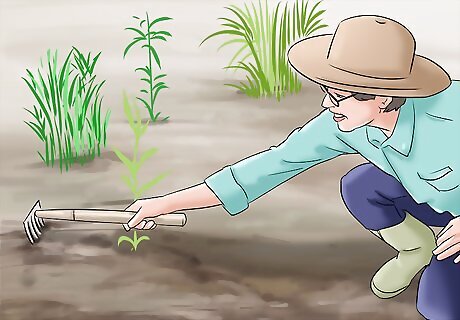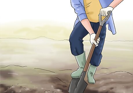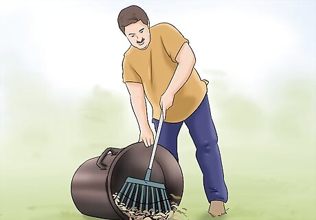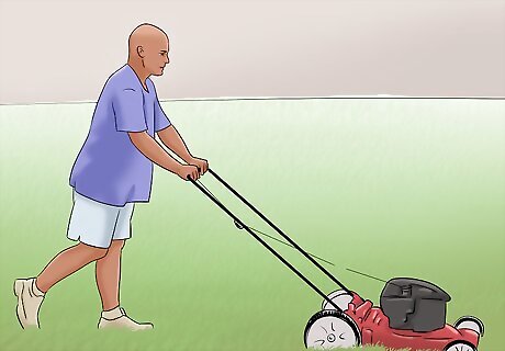Vary gardening activities. Rather than working on a strenuous gardening activity for 1 hour, break up garden tasks into more moderate activities. For example, break up a session of strenuous digging with flower deadheading. Rotate through a variety of gardening exercises each week. Consider a few of the following activities to vary your gardening routine. Mow the lawn with a push mower. A push mower, rather than a riding mower, provides great cardiovascular exercise. During the summer months, mow the lawn once or twice a week. If your yard is too large to use a push mower in a single session, divide the lawn into small areas and mow each area over the course of a week. Dig holes. Digging holes for fence posts, flower transplants or new trees builds muscles in the stomach, legs, shoulders, arms, neck and back. Instead of using gas- or electric-powered post hole diggers, get out a shovel and dig a hole yourself. Start a compost pile. Compost is a valuable fertilizer for the garden, but also presents an opportunity for gardening exercise. Turning or rotating compost with a pitchfork burns about 250 to 300 calories every 30 minutes. Weed to lose weight. Weeding helps tone your legs, arms, shoulders and back. The more resistant your weeds, the better workout you will be. When weeding, switch arm and leg positions to ensure even muscle use throughout your body. Instead of spraying weeds with chemicals, pull them out yourself to expend extra calories and tone your muscles.