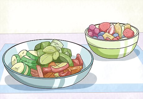 Eat plenty of fresh fruits and vegetables daily. Maintaining a diet rich in fresh fruits and veggies is essential for keeping your body and blood pressure levels healthy. Aim to have fruits and vegetables make up at least half of each meal. Add veggie-based sides to each meal and try to eat between 2 to 3 cups of vegetables each day. Snack on whole fruits instead of processed snacks. Incorporate sweeter fruits into your dessert routine and decrease the number of sugary desserts you consume.