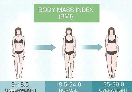 Maintain a healthy body weight. Calculate your body mass index (BMI) to see if you’re at a healthy weight for your height. If you need to lose weight, work with your doctor or a nutritionist to develop a program that will help you drop some pounds in a healthy, sustainable manner. If you’re already at a healthy weight, keep eating healthily and exercising to keep your weight and blood pressure down. Pay attention to how much weight you carry around your waist. More weight in this area can lead to higher blood pressure levels. To find your BMI, follow either of these equations: weight (kg) ÷ height (m)^2 or weight (lb) ÷ height (in)^2 x 703. A BMI between 18.5 and 24.9 is considered healthy.
