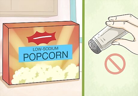 Lower your sodium intake. While 2,300 mg of sodium (1 tsp of table salt) per day is suitable for most adults, reduce your sodium intake to around 1,500 mg of sodium (less than ¾ tsp of table salt) per day to keep your blood pressure at a healthy level. Decrease the amount to 1,000 mg (less than ½ tsp of table salt) if you’re looking to keep down higher blood pressure levels. Avoid processed foods or read the nutrition labels to ensure you only pick up low-sodium options. Don’t sprinkle table salt onto your food or work it into your recipes just to add flavor. Add spices and herbs instead. Adjusting your diet can help reduce your blood pressure by 8-14 points alone.