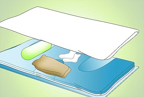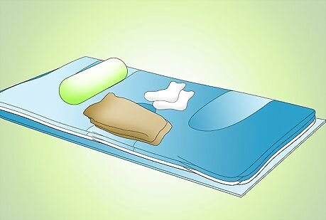 With someone to help you, roll up your bedding as tightly as you can. Roll from the foot of your sleeping bag. When you have finished rolling, tie up the roll with a length of soft rope.