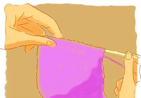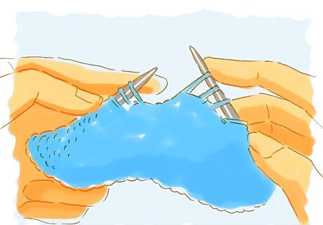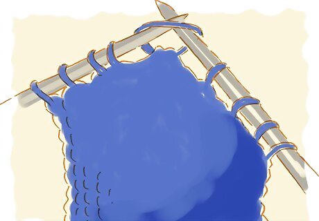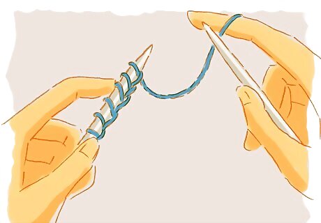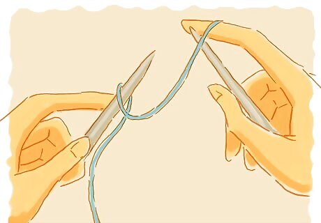 Twist the yarn into a loop around your index finger and wrap the loop over the top of the needle. Pull the loop tight on the needle. If you are using size 7, 8, 9 or 10 needles, cast-on about 150 stitches to make a medium-sized blanket. If using a size 11, 12 or 13 needle, cast on between 70 to 80 stitches. For even larger needles, cast on between 60 and 70 stitches.