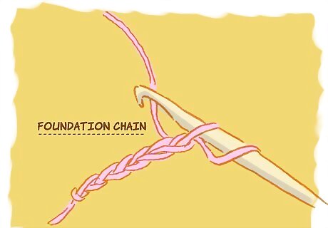 Make a foundation chain of stitches along your needle. Slide a slipknot onto the crochet hook, wrap the yarn around the hook from the back to the front and draw a new loop through the knot.