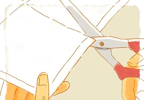 Cut a 4-inch by 4-inch square out of thick paper. Place it in one corner of the blanket and cut the fleece around it so that a square is cut out of the corner. Repeat for the remaining three sides of the fleece.