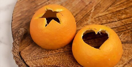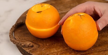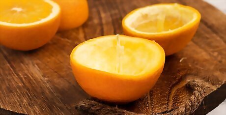 Locate the "wick". Once separated from orange flesh, the orange peel should be easy to remove. When removing the orange flesh, a white wick-like “stem” part should remain––leave this intact, still attached to the peel.