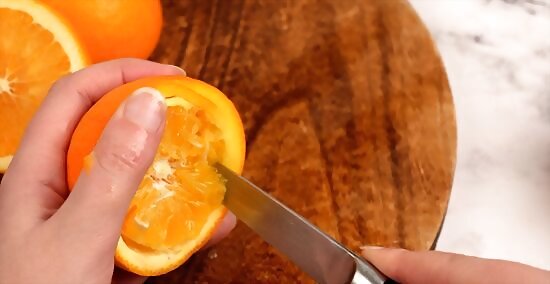Peel the orange. Gently push your finger under the skin of the orange and peel the skin away so that it separates from the orange without tearing.