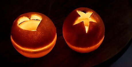 Create a design. The design is both pretty and functional, as it allows the candle to breathe. Create a design on paper first, to help prevent mistakes when cutting the orange. Then, take the top off the orange and score out the design you've made, using the paring knife.