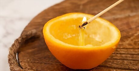 Light the candle. Light the orange’s stem with a lighter. This may take a couple of attempts. It might be easier to use extra long barbecue matches if you feel it's too cramped using a lighter.