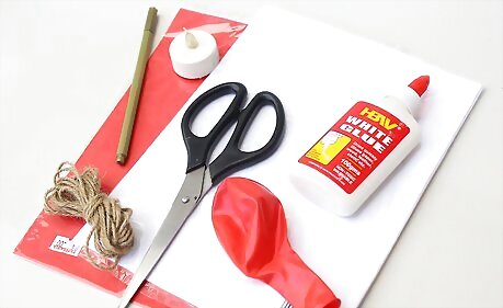 Gather your materials. This lantern is perfect for those who like working with glue. Because it requires so much glue, however, you will need to give it some time to dry. If you are in a hurry, this might not be the right choice for you; the lantern will need at least a day to dry. Here's what you'll need to make this lantern: Balloon Tissue paper (white and red/yellow) Scissors (optional) Paintbrush or foam brush White school glue Water Black or gold permanent marker (optional) String Hole puncher Battery-operated tea light