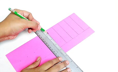 Draw a series of vertical lines across the red paper. They need to be 1 inch (2.54 centimeters) apart, and going from the folded edge up to the horizontal guide line you just drew.