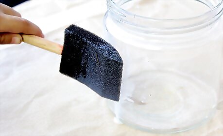 Paint the entire jar using Mod Podge. You can use a paintbrush or a foam brush. If you are working on a large jar, you can paint a small section first. If you don't have any Mod Podge, you can mix one part white school glue with one part water.