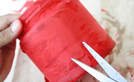 Cut or tear red tissue paper into small pieces. The pieces should be proportionate to the jar. For a very small jar, make the pieces about 1 inch (2.54 centimeters) big. For a larger jar, try something that is about 3 inches (7.62 centimeters) big.
