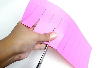 Cut along the vertical lines you just drew. Stop when you get to the horizontal guide line. Do not cut past this line, or your lantern will fall apart. You will end up with something that looks like a fringe.