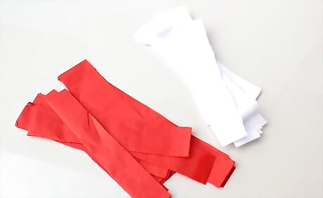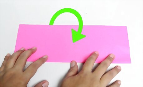 Fold the red paper in half, like a hotdog. Place the red paper down on the table in front of you and bring the two long edges together. Flatten the paper so that you end up with a long, skinny rectangle. The folded part of the rectangle should be facing you.