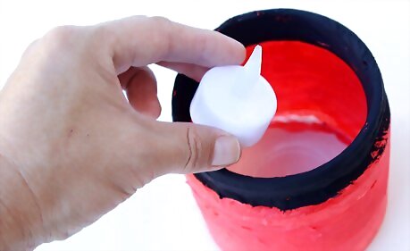 Let the lantern dry completely before you use it. You can use a real tea light inside the lantern, or a battery-operated tea light.