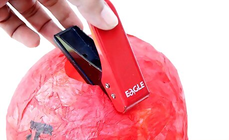 Use a hole puncher to poke two holes in the top of the lantern. They need to be straight across from each other, or the lantern won't balance right.