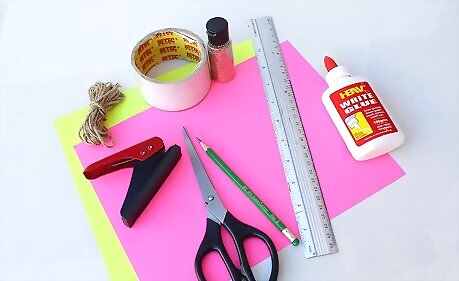 Gather your supplies. This paper lantern is simple and fun to make. It's made entirely out of paper, which makes it an easy and inexpensive craft. Here's what you'll need: 2 sheets of paper (1 red and 1 yellow, same size) Scissors Ruler Pencil String Glue, tape, or stapler Hole puncher Gold glitter, sequins, gold paint, etc (optional) Red/yellow paper streamers (optional)