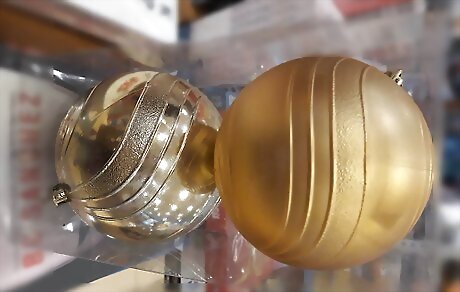 Tuck glass Christmas baubles into a clear vase. You can use all the same size and color, or you can use multiple sizes and colors. For a more elegant display, use ornaments that are all the same color, but in satin and glossy finishes. How many ornaments you use depends on the size of the vase. If you have a cylindrical vase, consider arranging the ornaments in neat, off-set rows, like bricks.