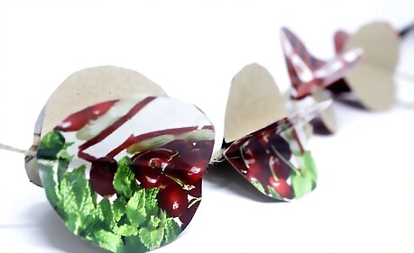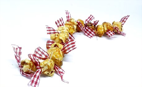 Make a traditional popcorn-and-berry garland. Cut a long piece of string and tie a loop in 1 end. Thread the other end of the string through a large needle, then push the needle through pieces of popcorn and cranberries. Pull the needle off at the end, then tie another loop into the string. If you don't have cranberries, try red, wooden beads. You can also use short, ⁄2 in (1.3 cm) pieces of cinnamon, dried citrus slices, and wooden beads instead of cranberries and popcorn.